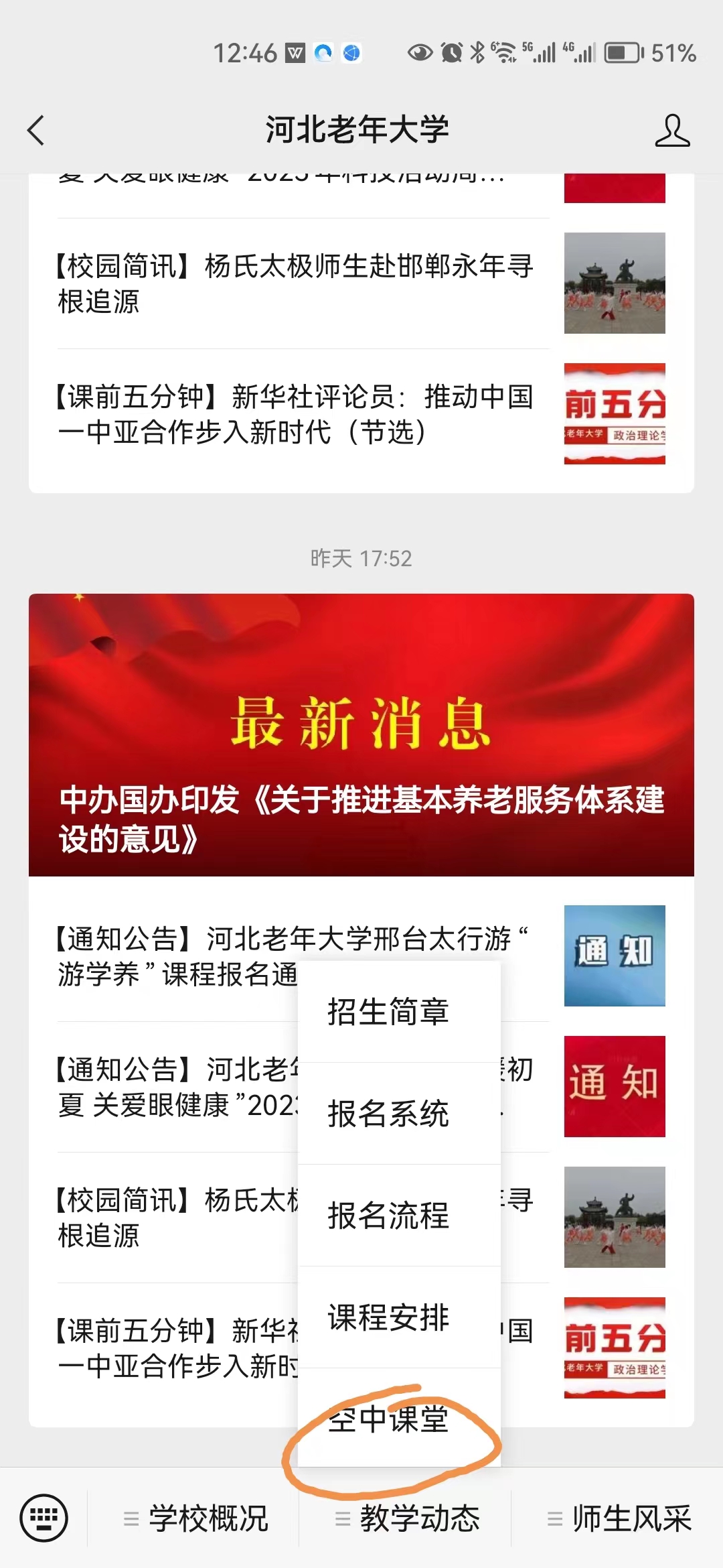 2.打开“HTH.COM-华体会(中国)”公众号对话框,在底部菜单找到“空中课堂”,点击进入即可观看。