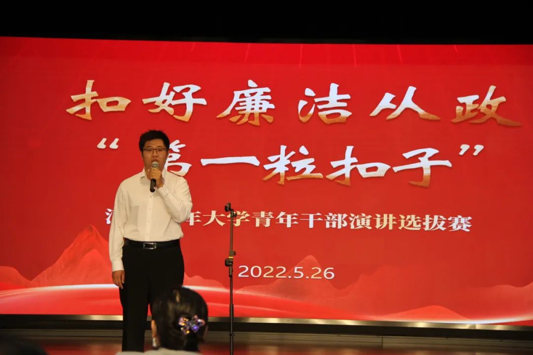 为贯彻落实习近平总书记在十九届中央纪委六次全会上、在2022年春季学期中央党校中青年干部培训班上重要讲话精神,教育引导年轻干部对党忠诚老实,坚定理想信念,牢记初心使命,正确对待权力,时刻自重自省,严守纪法规矩,5月26日,HTH.COM-华体会(中国)举办扣好廉洁从政“第一粒扣子”青年干部演讲选拔赛。局务会成员、常务副校长尚宝英出席活动并致辞。