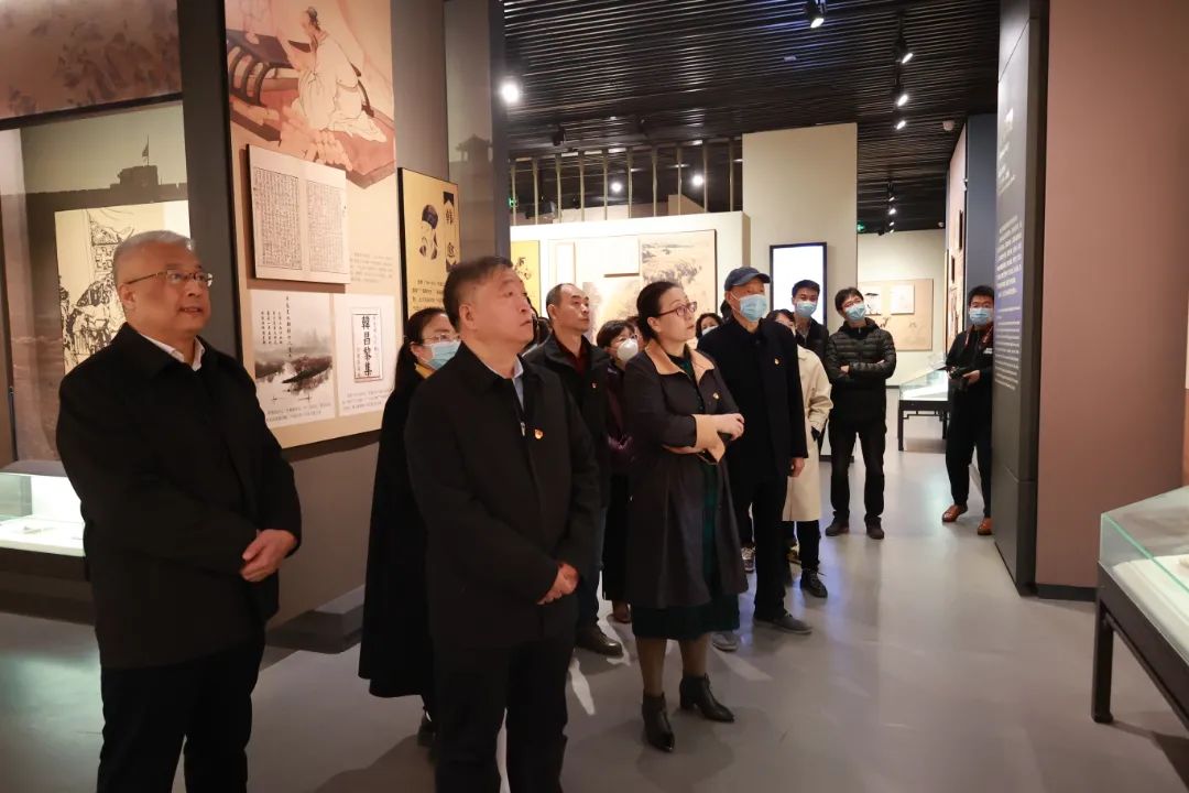 随后,在文学馆专业讲解员的引导讲解中,一行人参观了文学馆一层古代文学史展厅和二层现当代文学史展厅。置身其中,同志们深切感受到了我省繁华锦绣的文化魅力、流光溢彩的文学贡献和波澜壮阔的文学发展历程。作为全国首家省级文学馆,馆内既有珍贵的史料文物、书画典籍,也有实景模型、影像资料,向同志们展现出一幅恢弘的文学发展历史长卷,展示了从先秦时期到现当代,燕赵沃野为文学发展做出的卓越贡献。尤其是建党以来,众多像李大钊、孙犁这样的河北籍文学大家,在文学发展史上影响深远,熠熠生辉,充分反映了燕赵大地时代的变迁、社会的进步、思想的解放。聆听着讲解,观看着展览,同志们被河北文化的魅力深深吸引,被河北文化的根脉源泉深深打动,文化自信心和民族自豪感油然而生。