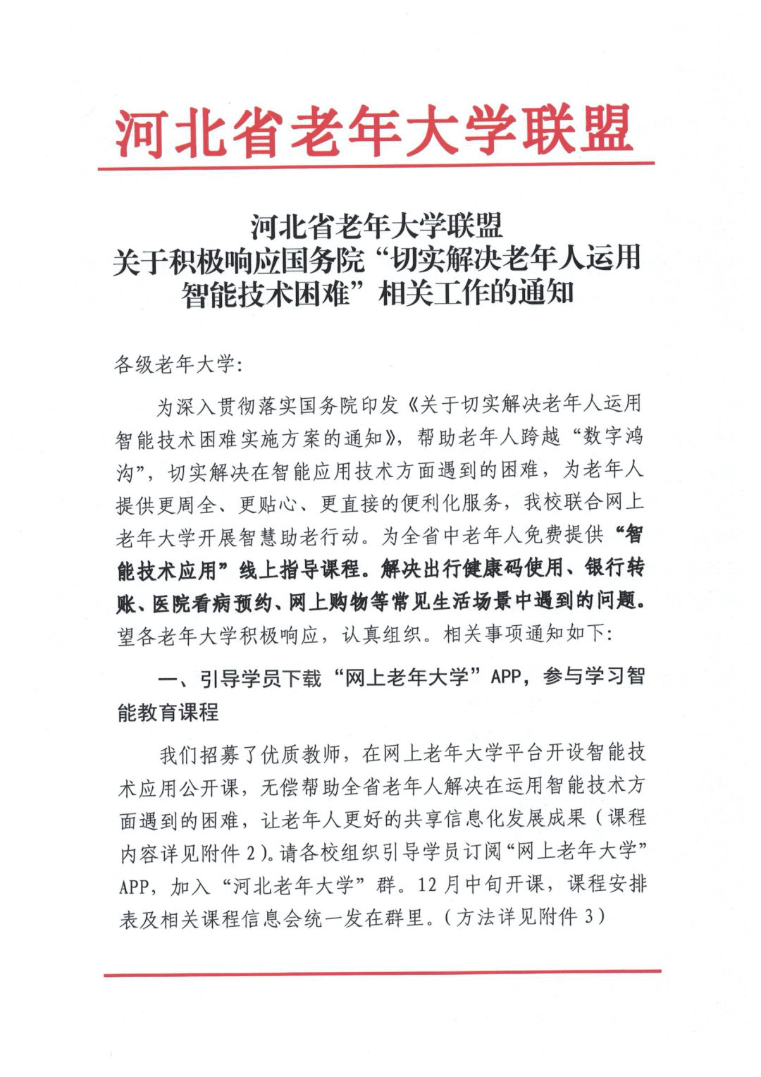 河北省老年大学联盟关于积极响应国务院推进老年人智能教育相关工作的通知