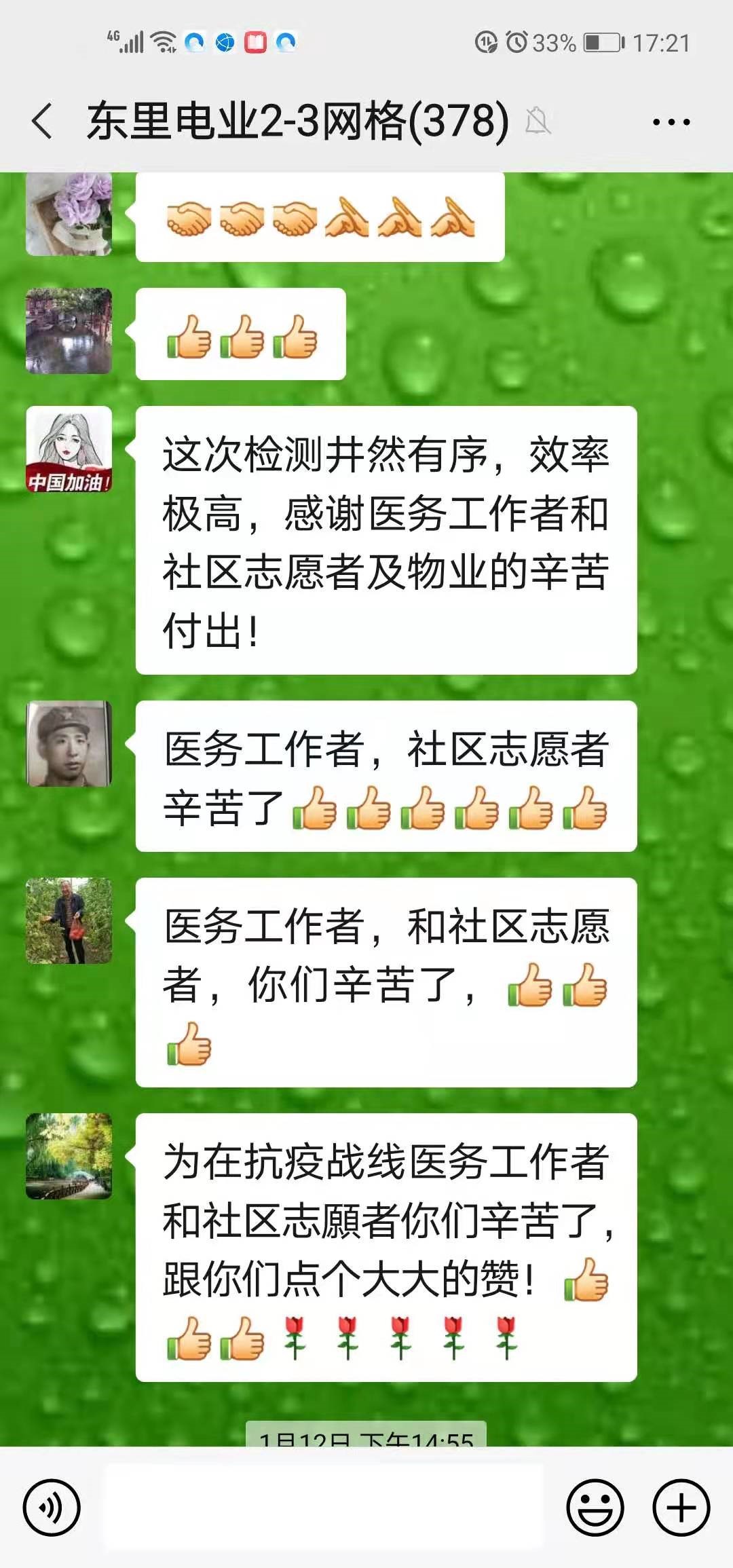 退休职工张惠同志,发挥余热,助力抗疫,十几天如一日,协助居委会录入核酸检测的基础资料,坚持、坚韧、坚守着,中午简单吃几口饭,又马上投入紧张的工作。朱双国等几位志愿者带领核酸检测人员为行动不便、残疾、重病等老年人入户服务,上楼下楼反复多次,老同志们没有怨言,有的是誓言和温度。志愿者滑多坤、仇冬清(老年大学古筝班学员)王建民、骆超英、刘志刚、邵常平、王小丽、张惠等坚持小区巡逻,开展抗疫宣传,维护社区秩序,协助做好小区生活用品的保障和供应工作,为尽快完成检测任务,他们中午轮流吃饭,不停不休,以实际行动得到了小区居民、社区居委会的高度认可。