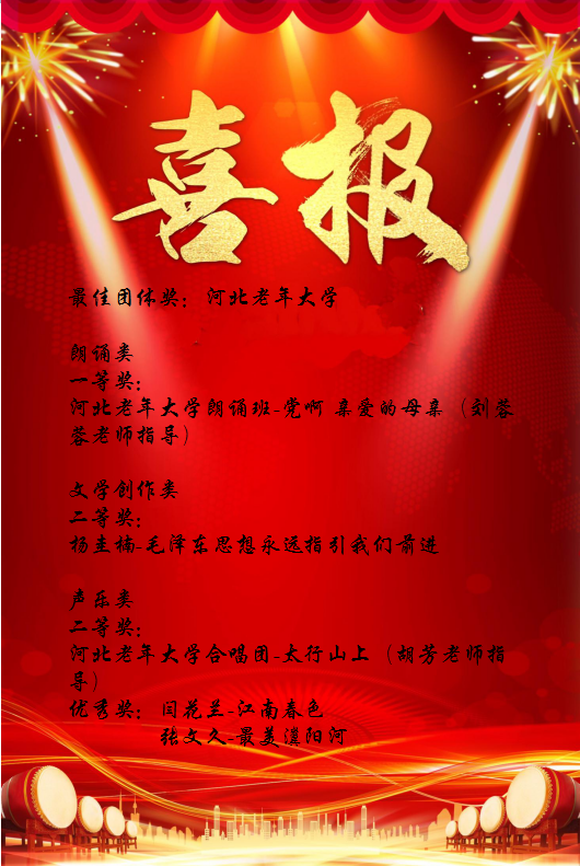 中国老年大学协会和网上老年大学共同举办的“致敬中国力量 献礼建党百年——我的中国故事”优秀作品展投票评选活动于5月18日正式落下帷幕,本次活动共200余所组织机构参赛,我校老师和学员们踊跃参与、积极投稿,共报送了作品62幅,现将我校获奖情况公布如下:
