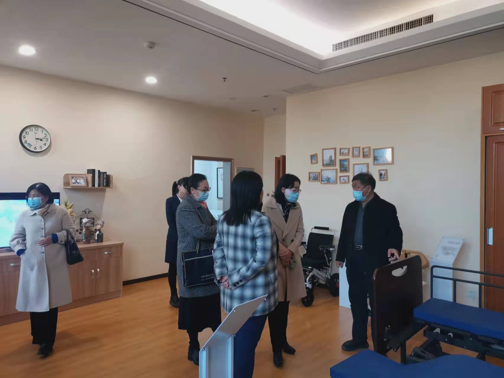 问道康养社区岳明珠院长及社管部、医疗部、社工部负责人对HTH.COM-华体会(中国)一行的到来表示热烈欢迎,随后带领大家参观了社区标准化房间、适老化设施、公共休闲娱乐区并举行了座谈。