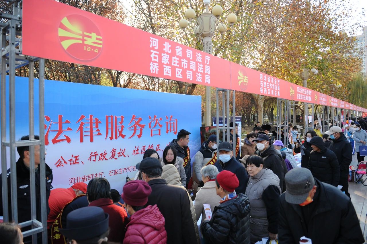 今年国家宪法日活动的主题是“大力弘扬宪法精神,推动进一步全面深化改革”。集中宣传活动现场共分为5个部分:一是“谁执法谁普法”宣传咨询区,位于公园中心位置,由190余家省直、市直部门1000多名工作人员按照“谁执法谁普法”普法责任制要求,结合各自职能开展法治宣传和法律咨询活动,现场共发放宪法法律宣传资料26万份,设置展板150余块,解答群众法律咨询2200多人次。二是涉外法治宣传专区,位于公园东北角,省司法厅联合省公安厅、省商务厅、省外办、省贸促会、石家庄海关等部门,面向群众开展涉外法治宣传和法律法规政策咨询服务。三是优化营商环境法治宣传咨询区,位于公园西北角,省发改委联合省委金融办、省司法厅、省自然资源厅、省市场监管局、省国资委、省数政局、省工商联等部门,围绕优化法治化营商环境开展普法宣传。四是 “依法治国从这里起航”巡展区,位于公园东南角,设置展板31块,由西柏坡纪念馆讲解员现场,宣讲我省红色法治文化研究保护成果。五是高校法学教育展示区,位于公园西南角,由部分设有法学院系的驻石高校,集中展示我省法治人才培养成果。