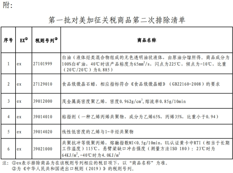 国务院关税税则委员会关于第一批对美加征关税商品第二次排除清单的公告