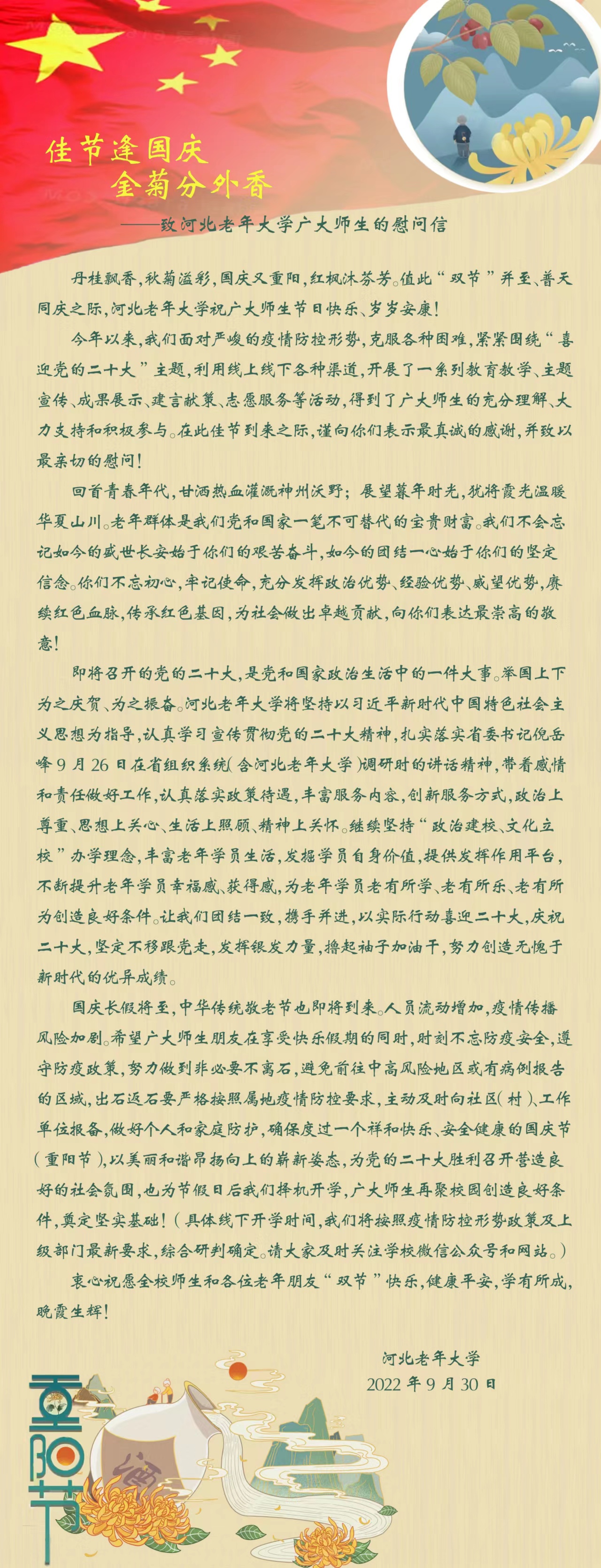 佳节逢国庆,金菊分外香——致HTH.COM-华体会(中国)广大师生的慰问信