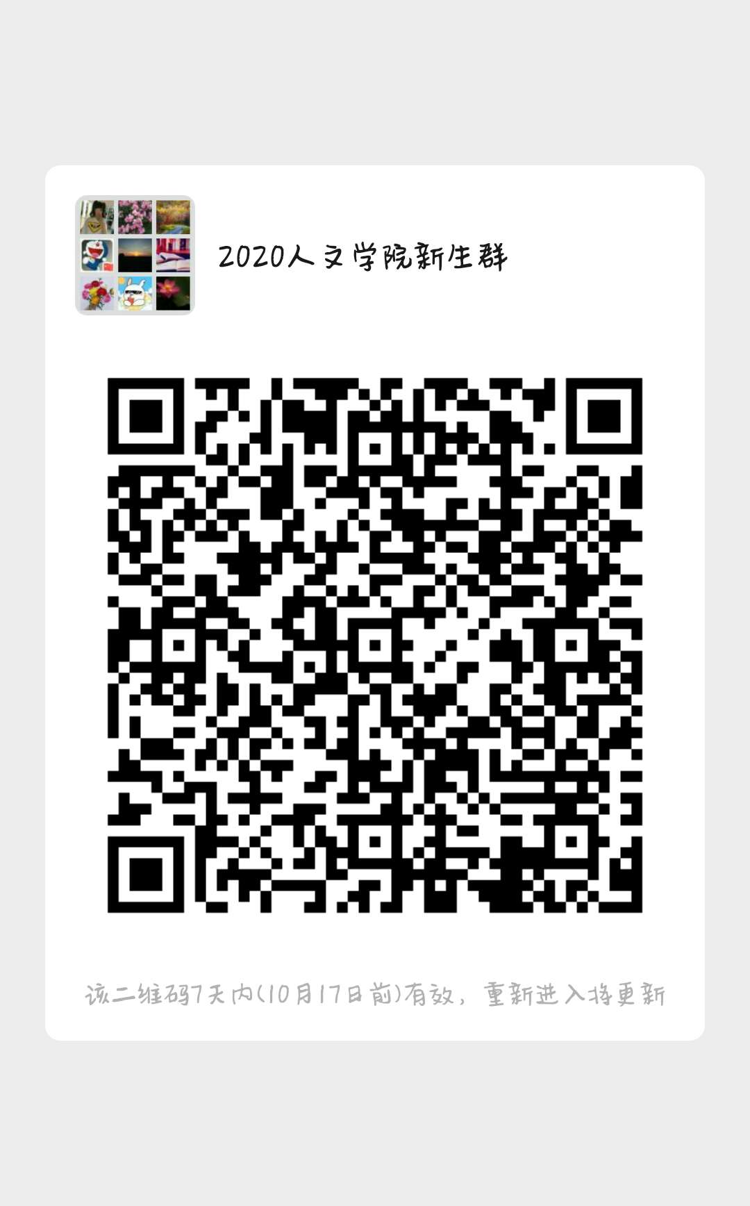为了方便学员和学校的沟通联系,我们各院系都建立了新学员微信群。1月份报名后还没有加入任何班级微信群的学员,请仔细核对自己的院系,扫码加入微信群。二维码6天有效,请尽快扫码加入!