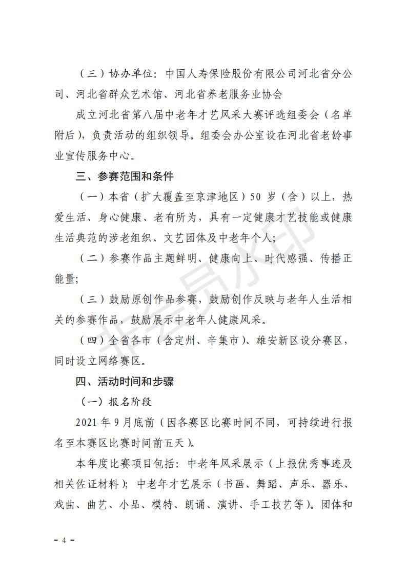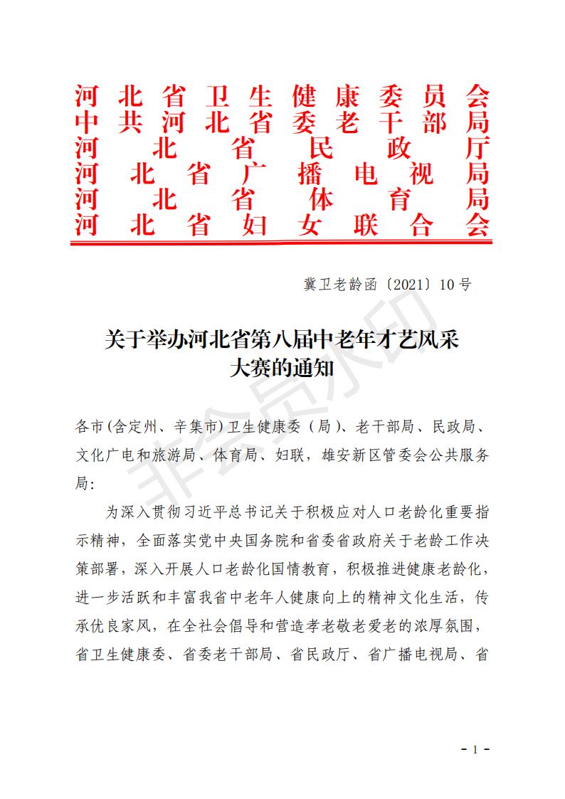 附件:关于举办河北省第八届中老年才艺风采大赛的通知